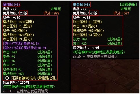 >>>>20级紫色武器与40级蓝色武器属性对比<<<<
