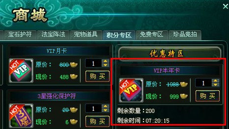 【无限优惠】开服前三天,商城还有半价的至尊VIP卡出售哦~~