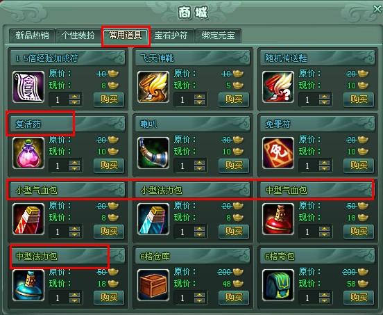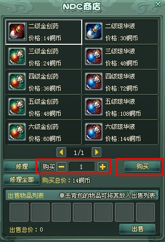 每次外出打怪前要记得带够足够药品噢!在各地的药品商或游戏商城处可以购买到各种生命恢复药品和法力恢复药品。